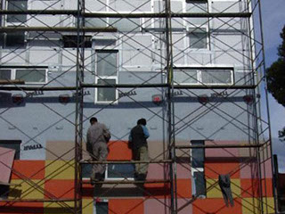 El acrílico, se coloca en la cara exterior del edificio mediante adhesivos y/o fijación mecánica, y se protege por un revestimiento exterior