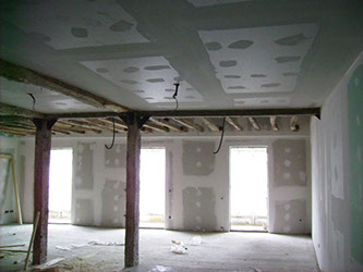 Para los interiores, utilizamos los sistemas Pladur, Placo, Knauff, etc, los mejores recursos para insonorizaciones y aislamientos térmicos en tabiques, trasdosados y techos continuos en cartón yeso.