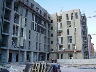 El acrílico, se coloca en la cara exterior del edificio mediante adhesivos y/o fijación mecánica, y se protege por un revestimiento exterior